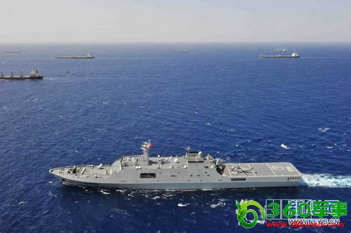 中国海军第六批护航编队指挥舰“昆仑山”舰在亚丁湾执行护航任务
